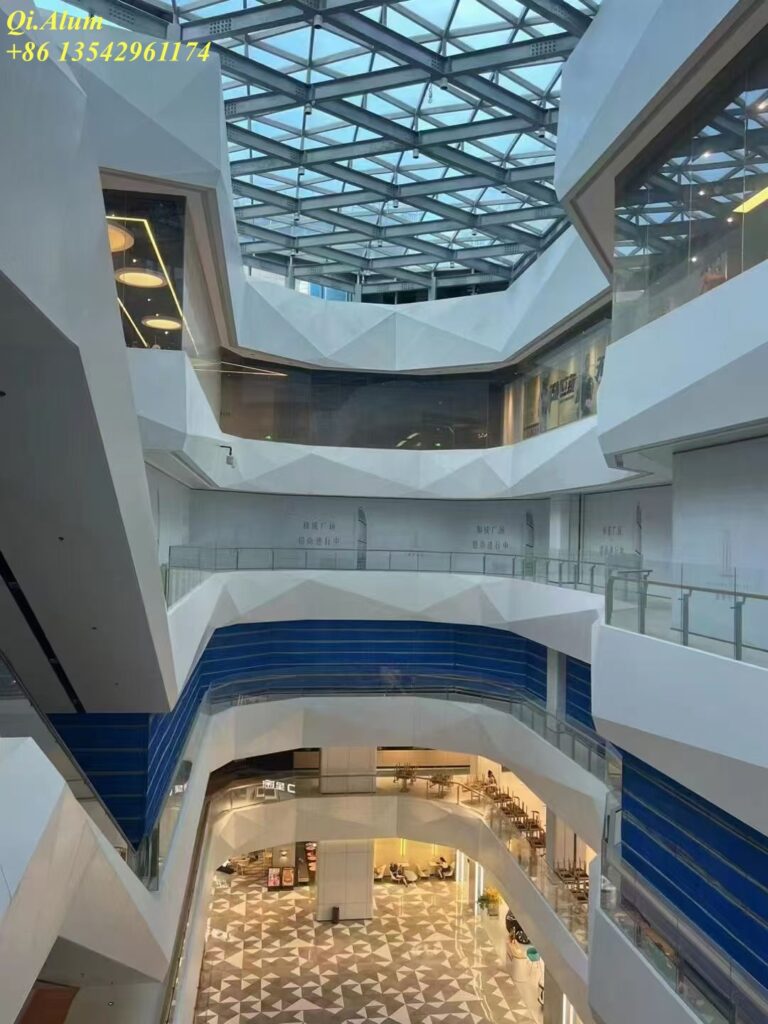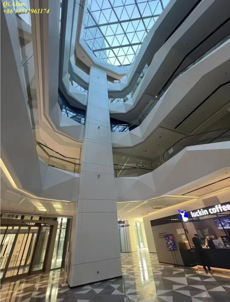 Many architectural projects today rely on aluminum curtain wall panels and facade systems to create visually dynamic spaces like this multi level atrium. The faceted balcony edges and crisp surfaces demonstrate how aluminum can transform ordinary structures into immersive architectural experiences. Combined with glass roofs or steel structures, aluminum becomes a key material in shaping contemporary urban architecture.