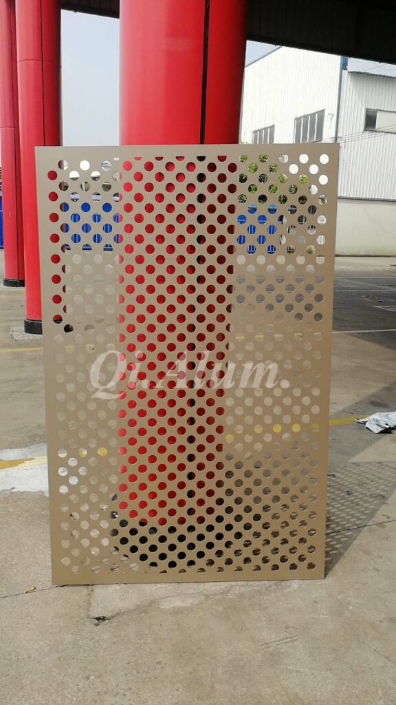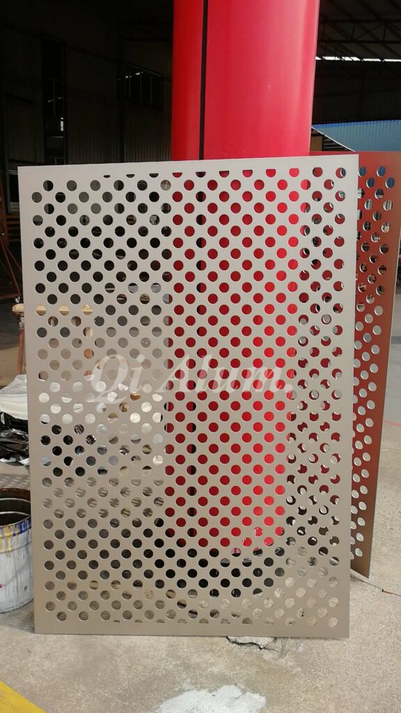4, custom design: punching aluminum panel can meet the user’s individual pursuit of decorative style. Punching aluminum panel needs to be completed by the designer before processing. After the confirmation of the design drawing, you can process and produce (punching aluminum panel specification, square number, shape, thickness, punching/perforation amount).